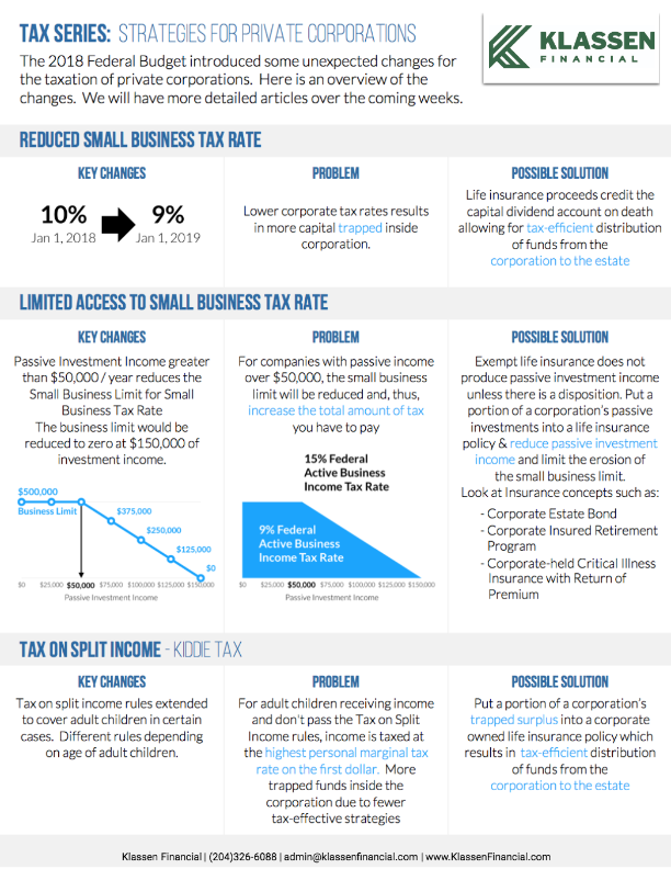 Last summer, Finance Minister Morneau announced a number of tax reforms for Small Business Owners, including the changes to income sprinkling, minimizing the incentives to keep passive investments and reducing the transfer of corporate surpluses to capital gains.